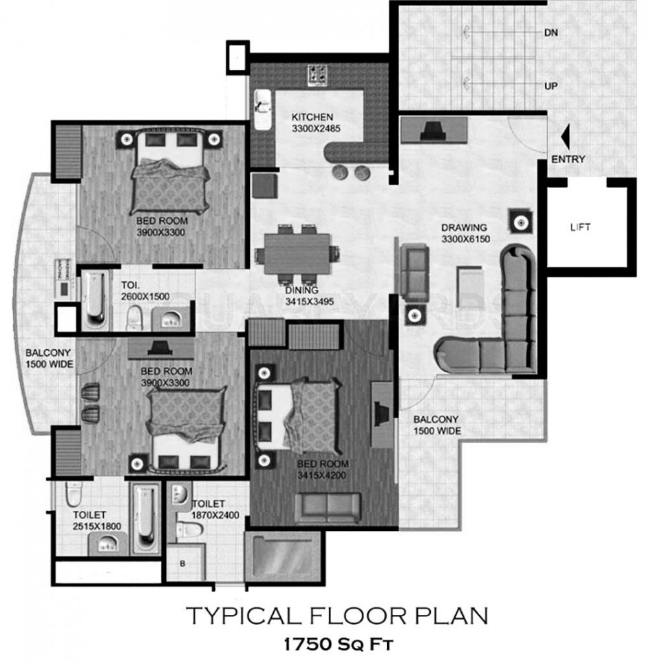 1750 Sq. Ft to 3250 Sq. Ft (Saleable) sq.ft -
