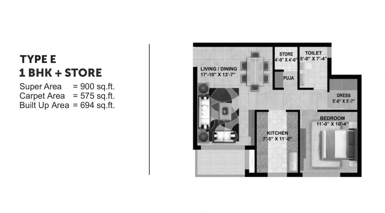 575 Sq. Ft to 1060 Sq. Ft (Carpet) sq.ft -