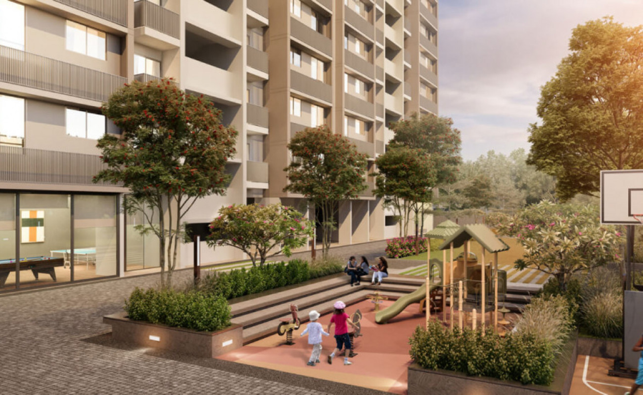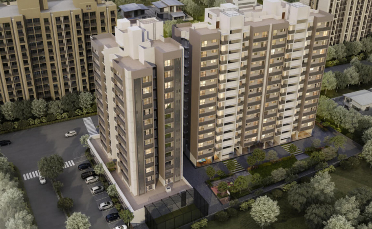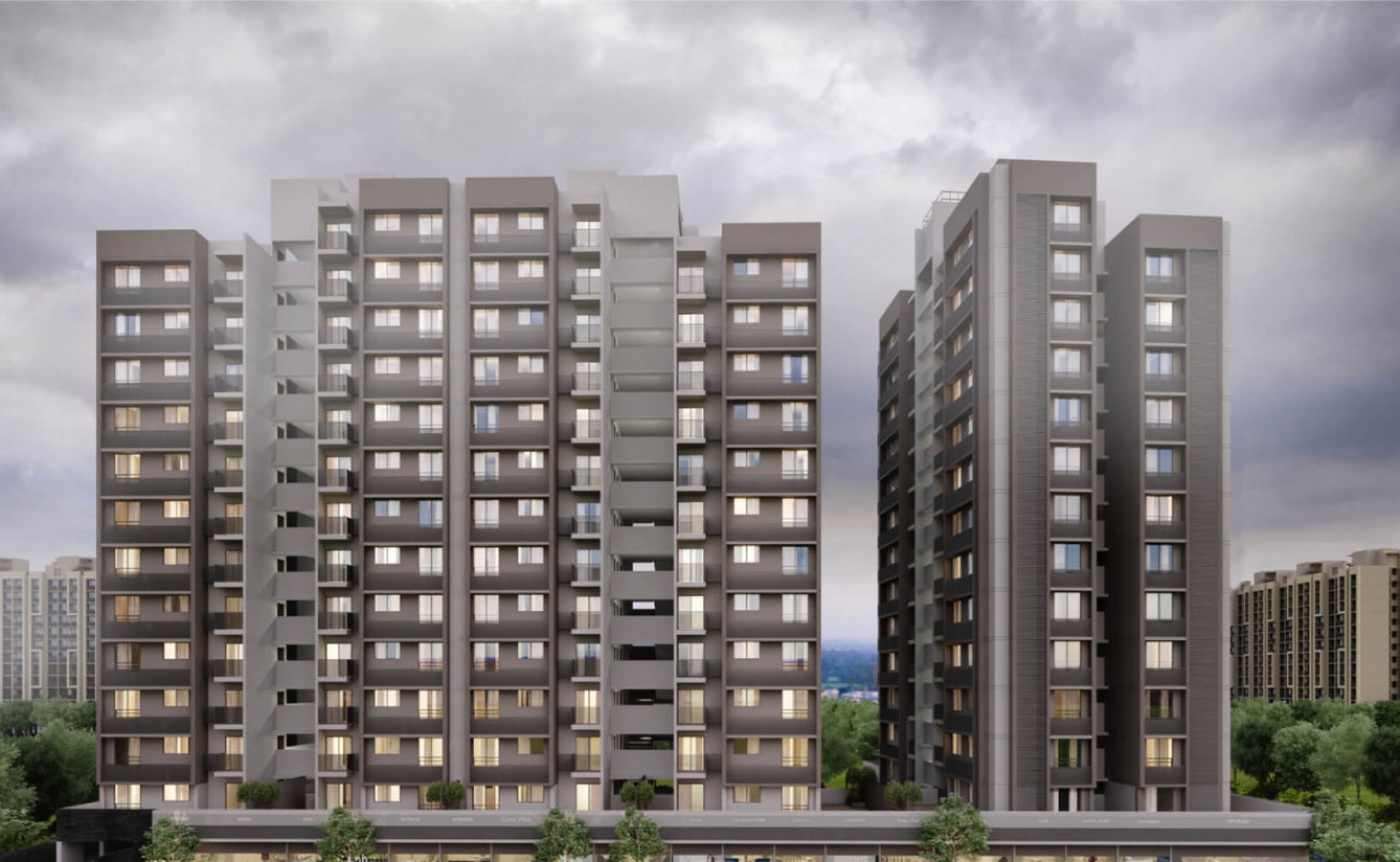 Saanvi Stella is a residential project located on SG Highway in Ahmedabad. Spread over 1.09 acres, the project consists of 181 well-designed 2 BHK and 3 BHK luxury apartments ranging from 608 sq. ft. to 768 sq. ft. Each apartment is thoughtfully designed to provide ample natural lighting and ventilation. Situated in a calm and serene area, Saanvi Stella offers a perfect place of bliss and tranquility. The project enjoys seamless connectivity to major points of the city, including Gora Ghuma Railway Station and Sardar Patel Ring Road.