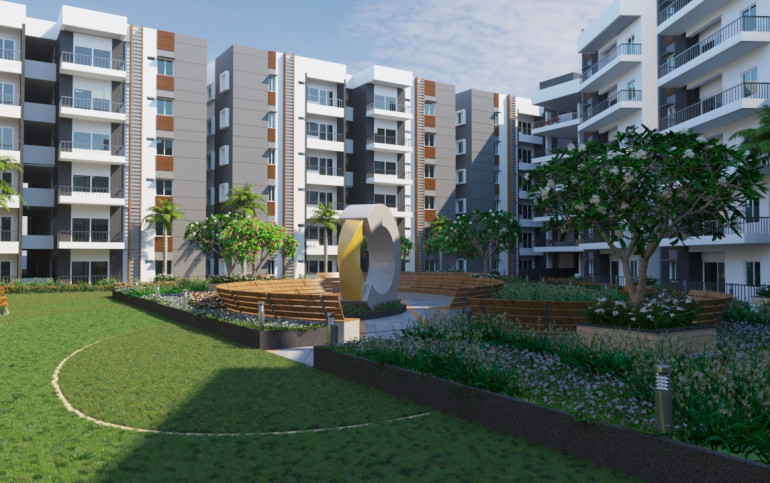 Discover the luxurious living experience at Ramky Golden Circle! This beautifully designed residential complex spans 4.11 acres and features three towers offering a total of 247 units, ranging from 1 BHK to 3 BHK apartments. With sizes estimated between 840 sqft to 2290 sqft, you'll find the perfect home for your needs. Conveniently located near major city points, a shopping center, NH 765, Nehru Outer Ring Road, and Rajiv Gandhi International Airport, this project offers the ultimate in convenience and connectivity. Live the lifestyle you deserve at Ramky Golden Circle!
